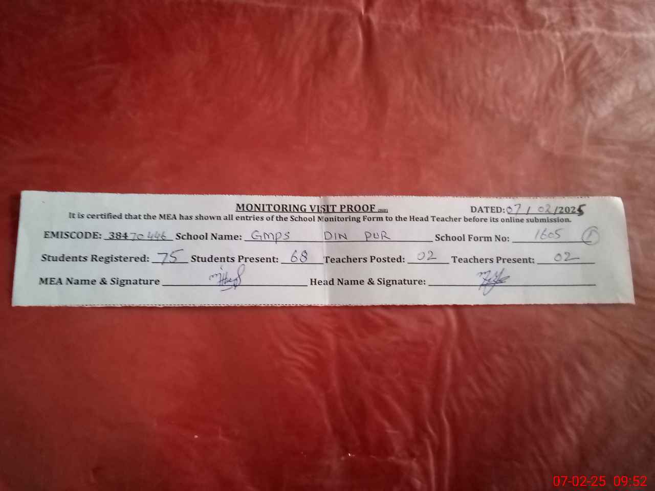 | EMIS Code: 38470446 | Name of School: GMPS DIN PUR | |||