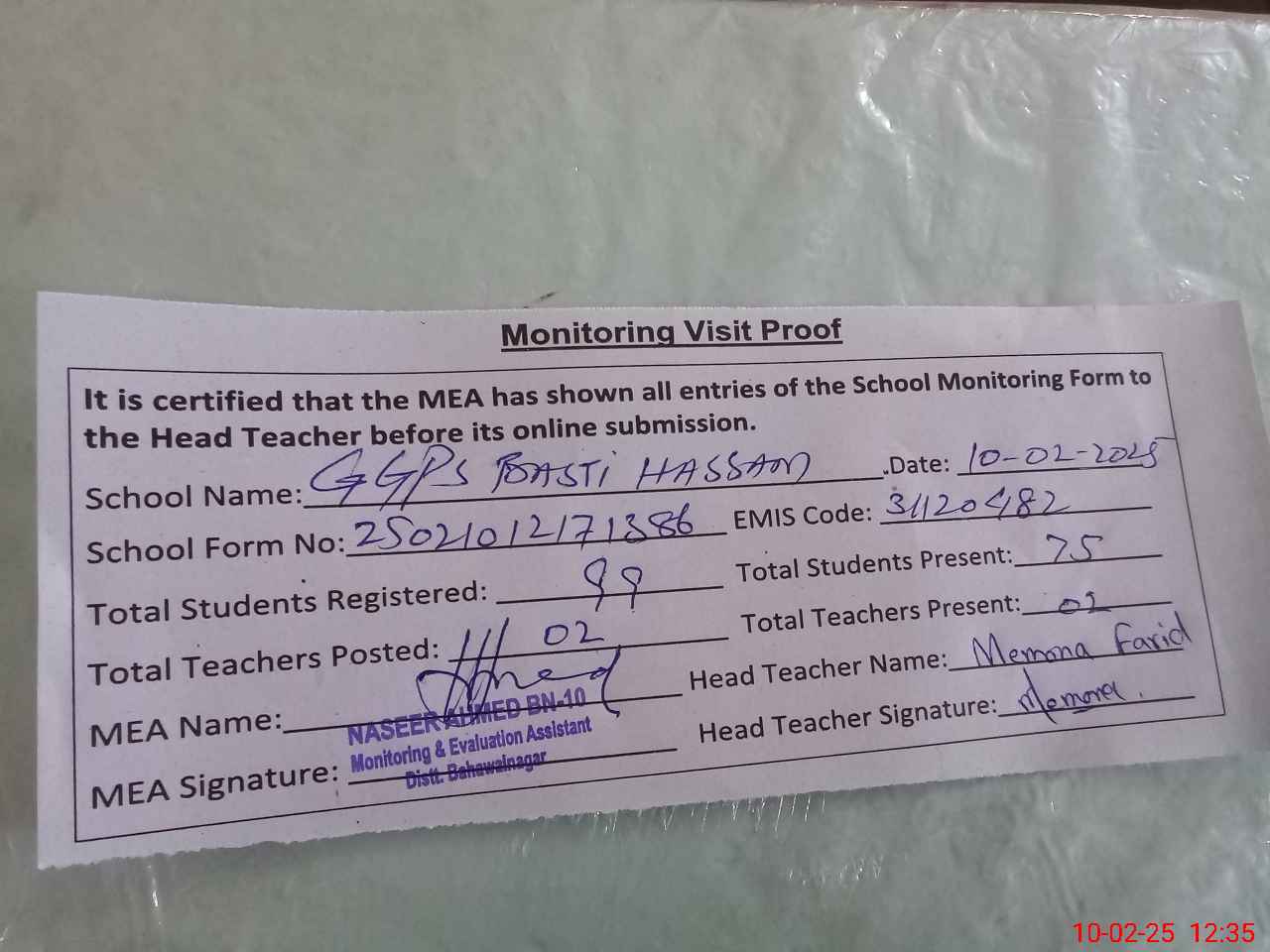 | EMIS Code: 31120482 | Name of School: GGPS BASTI HASAM | |||