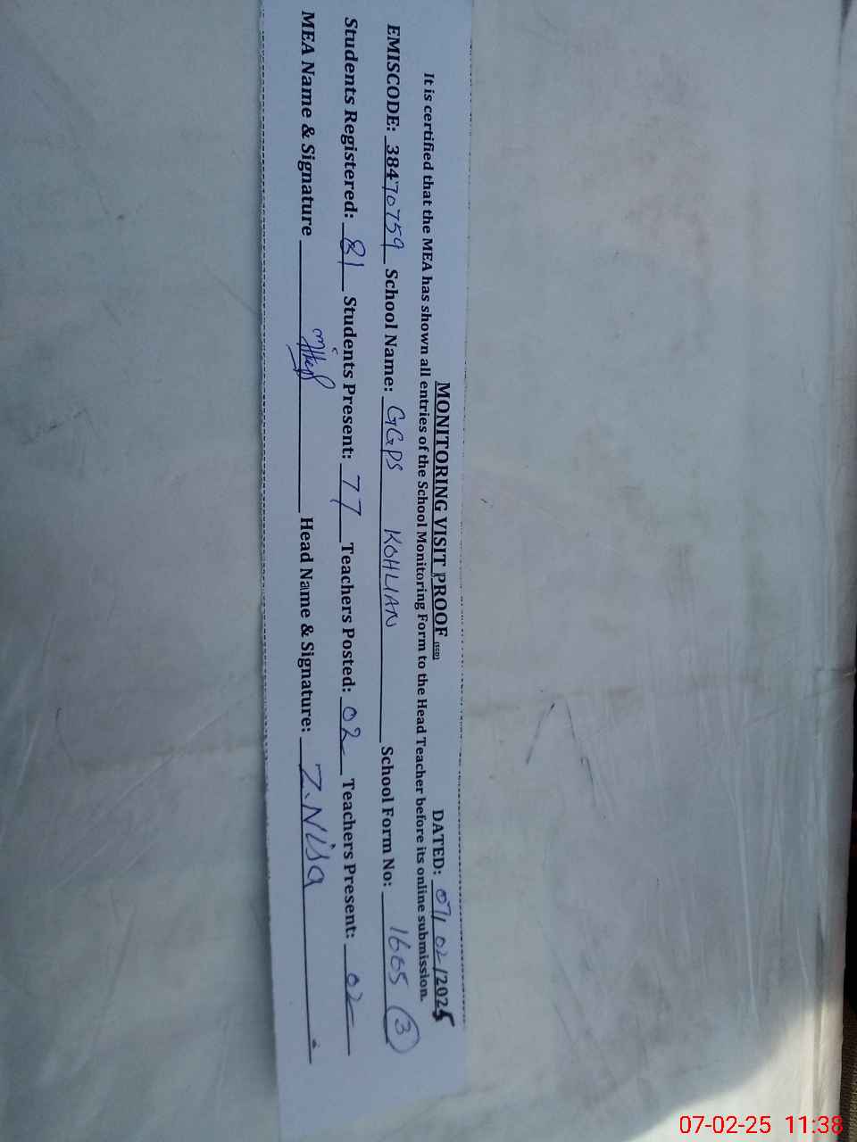 | EMIS Code: 38470759 | Name of School: GGPS KOHLIAN | |||