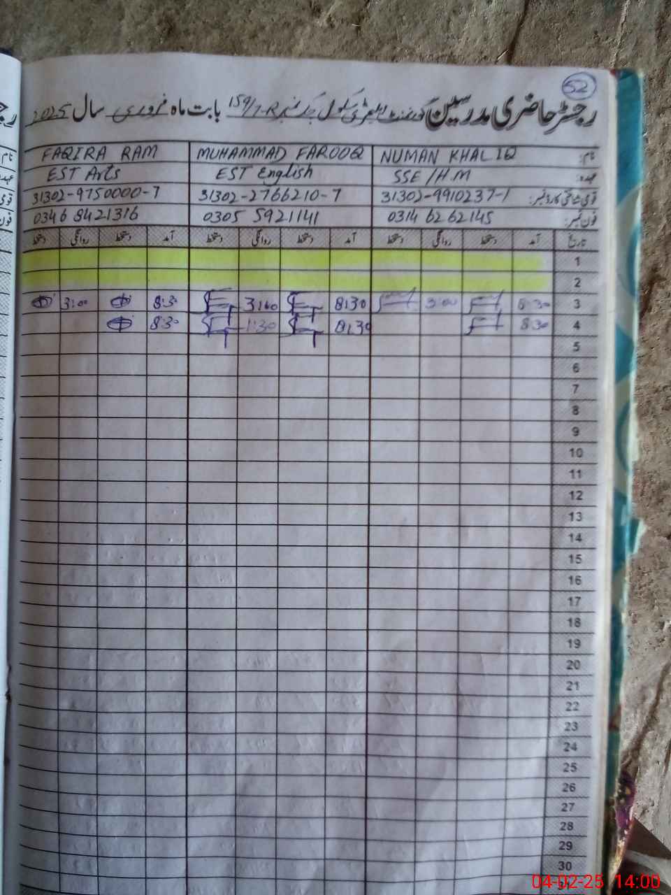 | Name: NO**** KH**** Designation: (School Headmaster's/Headmistress's) SSE (Arts) Phone/Cell Number: 03**** |