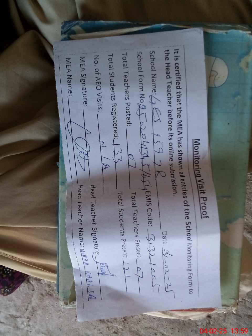 | EMIS Code: 31321005 | Name of School: GES CHAK NO.159/7-R | |||
