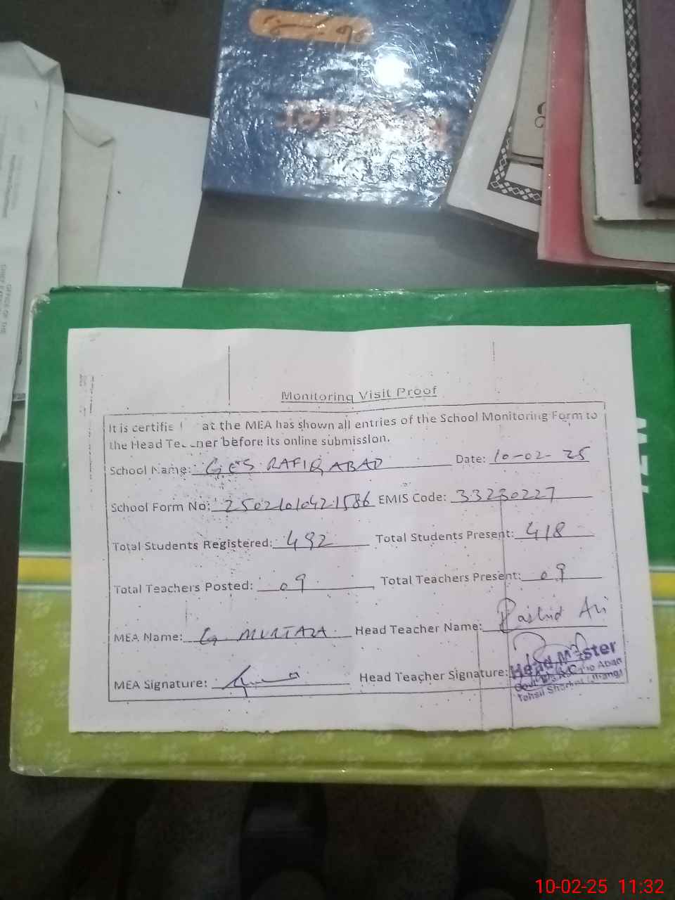 | EMIS Code: 33230227 | Name of School: GES RAFIQ ABAD | |||