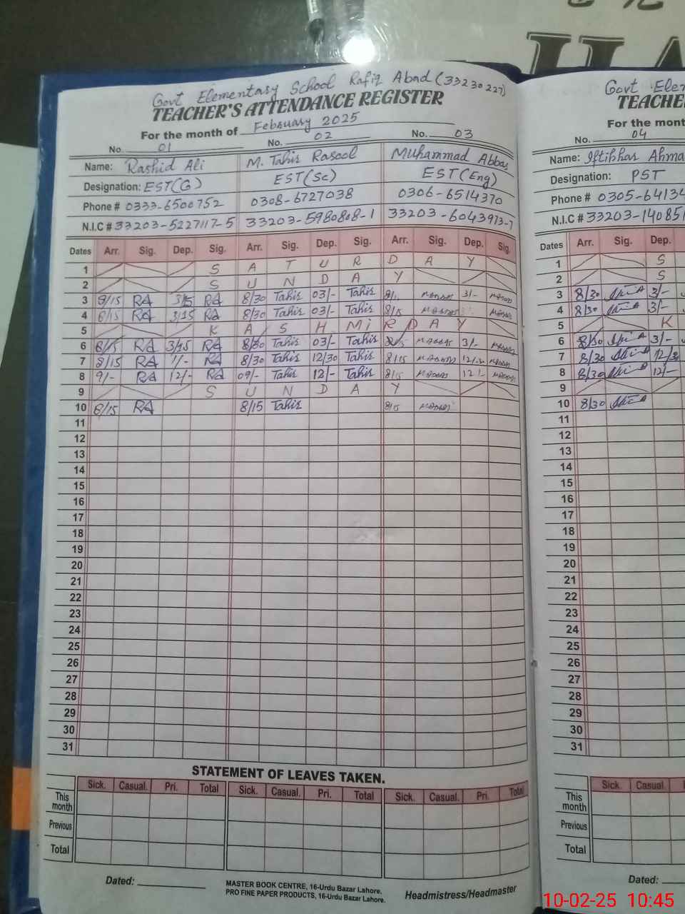 | Name: Ra**** Al**** Designation: (School Headmaster's/Headmistress's) EST Phone/Cell Number: 03**** |