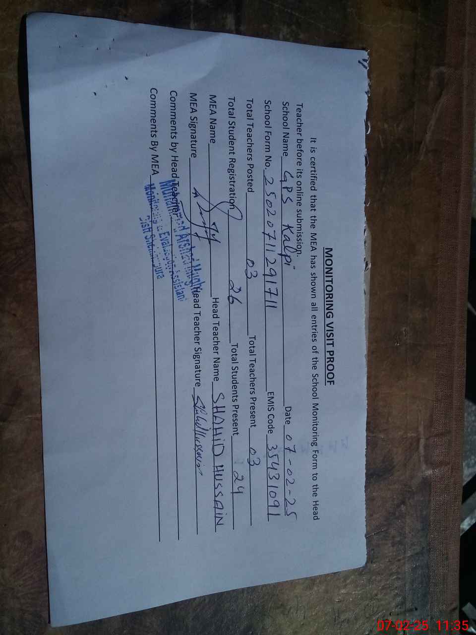 | EMIS Code: 35431091 | Name of School: GPS KALPI | |||