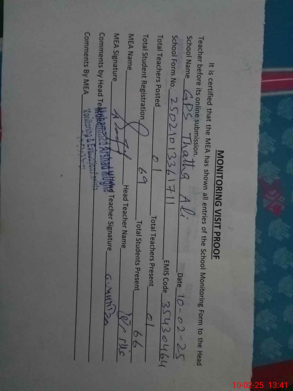 | EMIS Code: 35430464 | Name of School: GPS THATHA ALI | |||