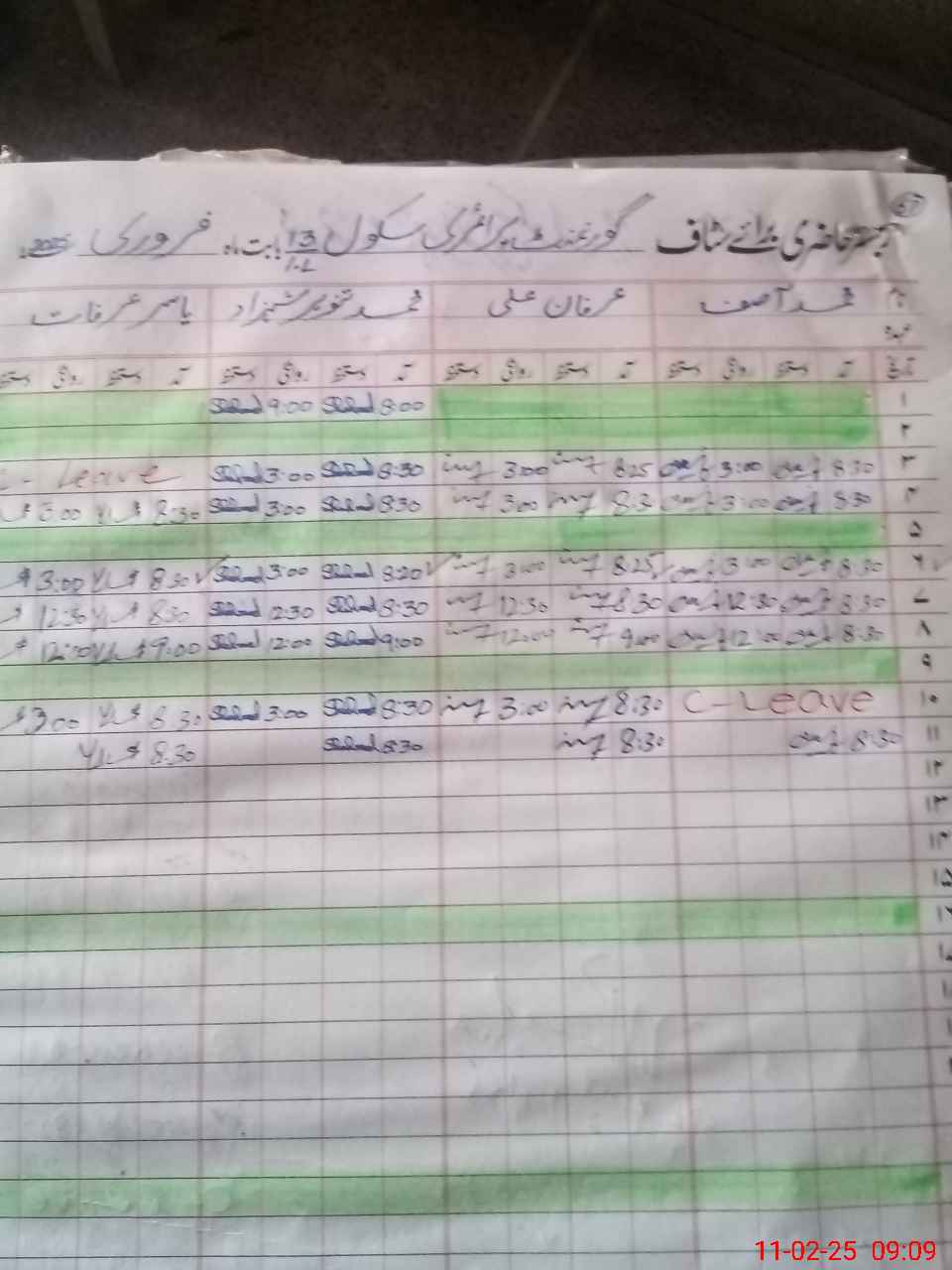 | CNIC | Full Name | Designation | R/C | Absence During Last Calender Month |