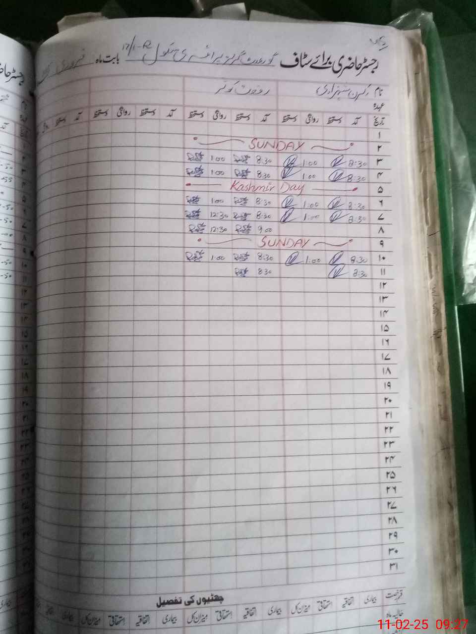 | CNIC | Full Name | Designation | R/C | Absence During Last Calender Month |