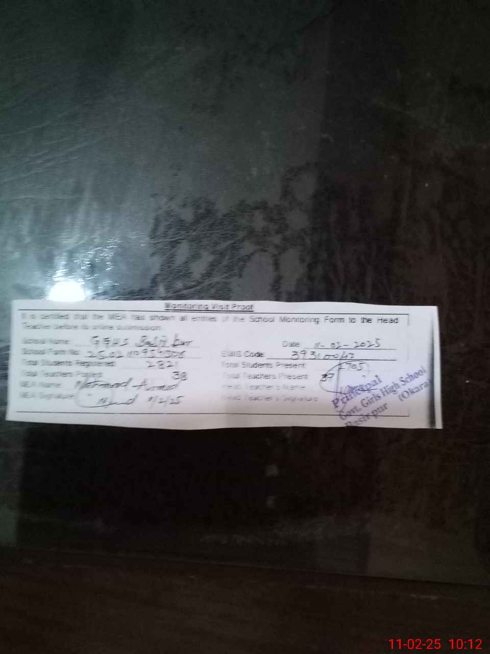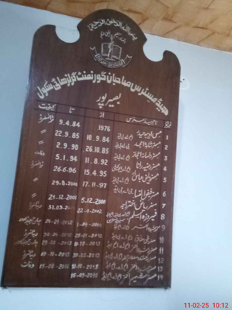 | EMIS Code: 39310047 | Name of School: GGHS MAIN DARS ROAD BASIR PUR | |||