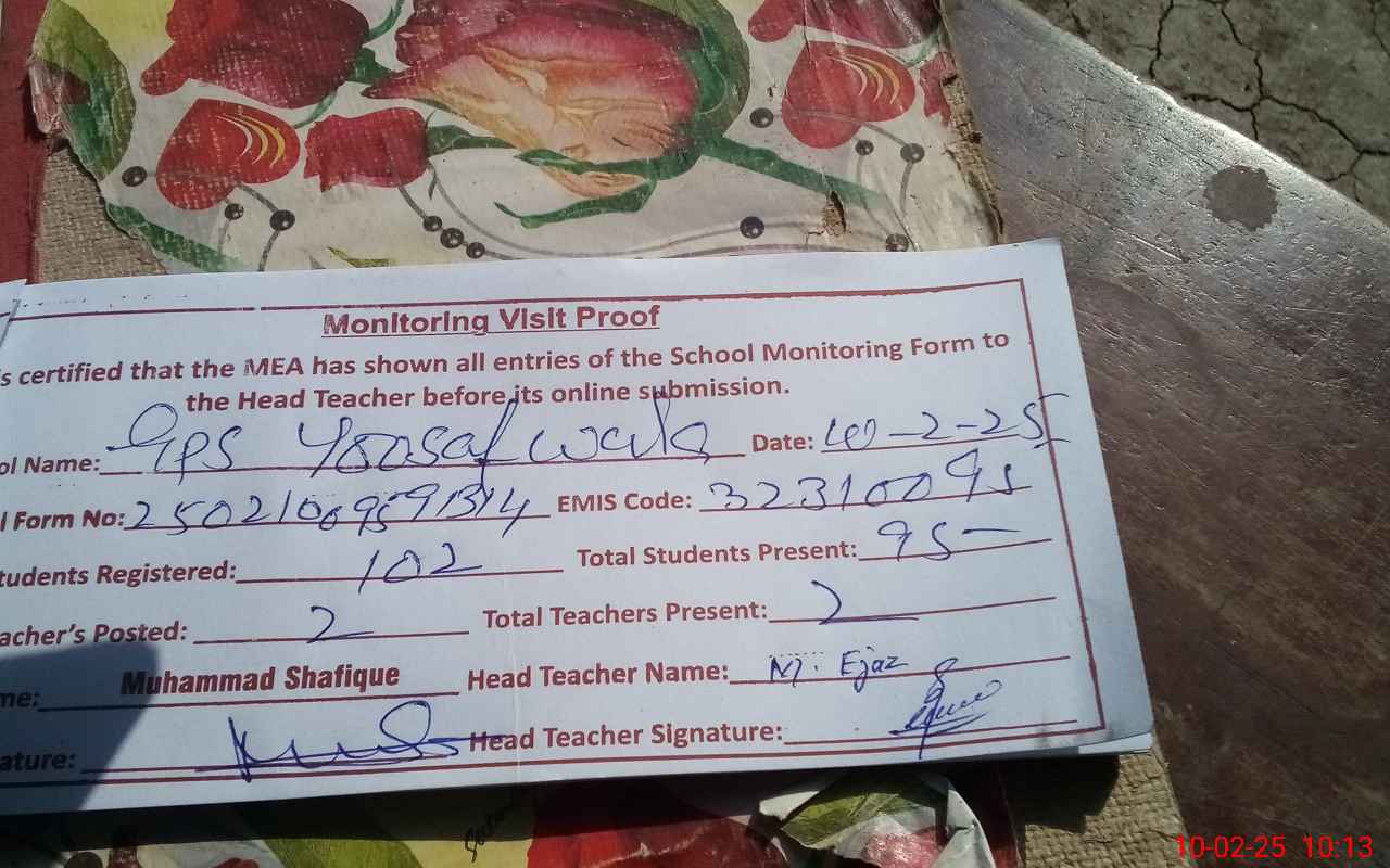| EMIS Code: 32310095 | Name of School: GPS YOUSUF WALA | |||