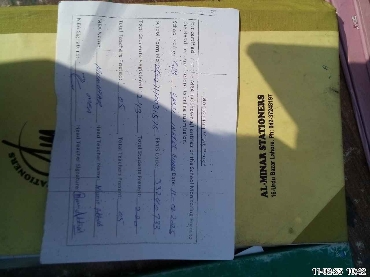 | EMIS Code: 33240733 | Name of School: GPS INAYAT SHAH | |||