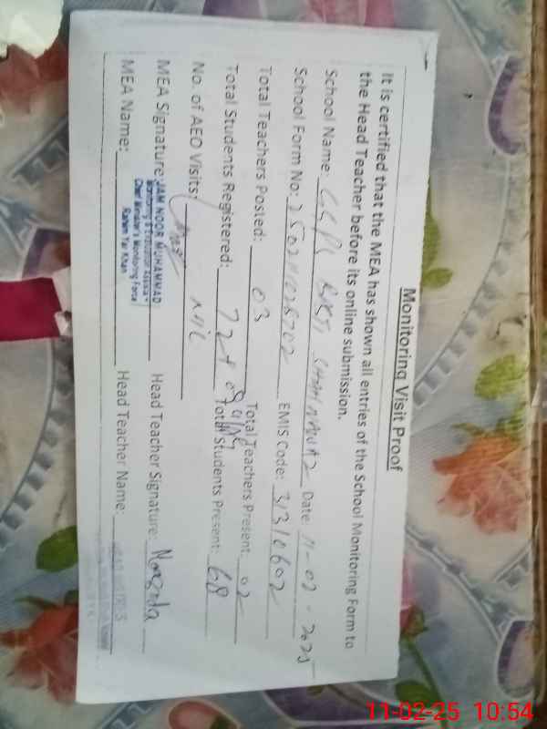 | Certified that this School was Inspected by the Undersigned MEA/DMO Today and the Information Stated Above is as Per Record. | |||||