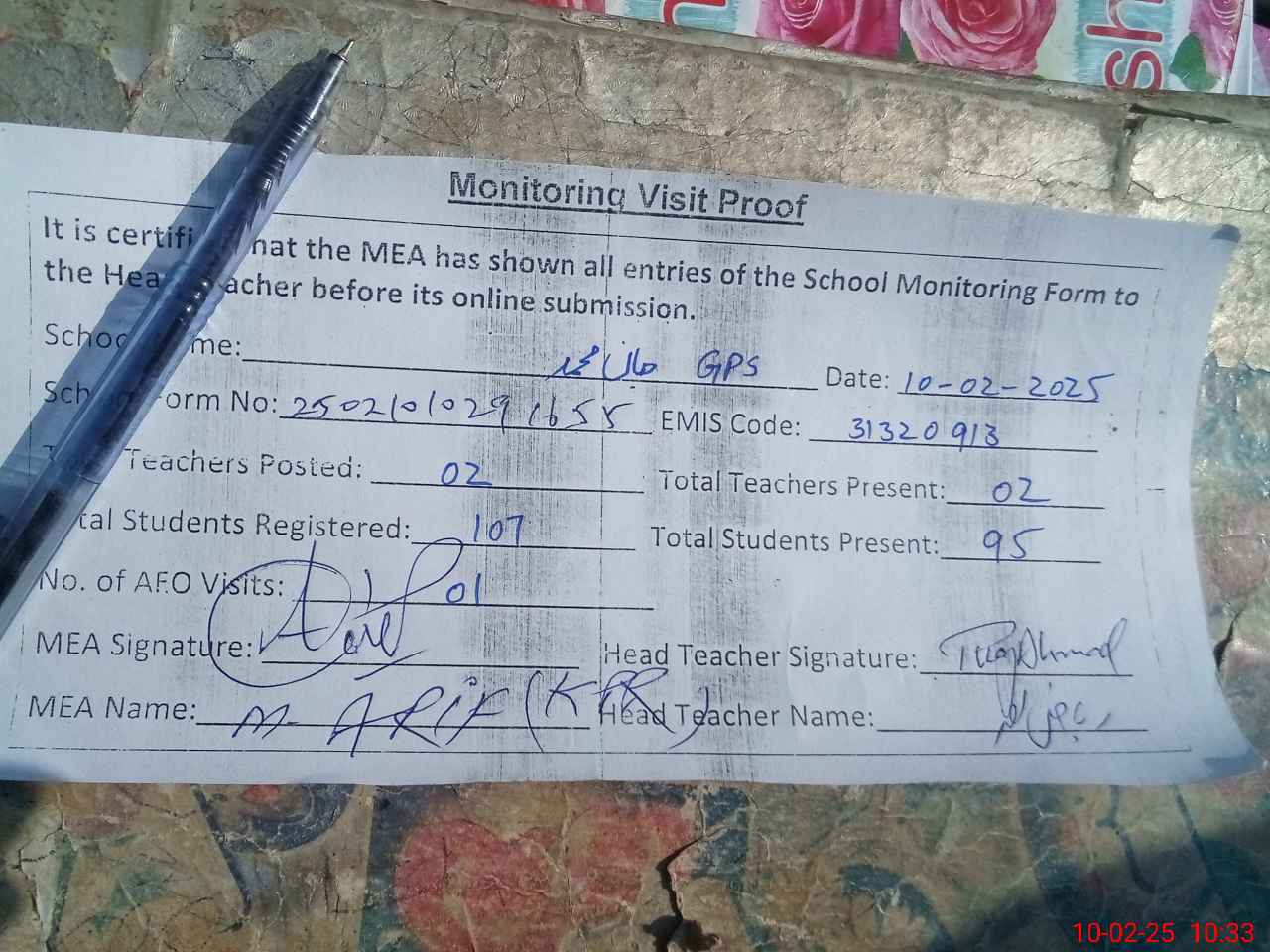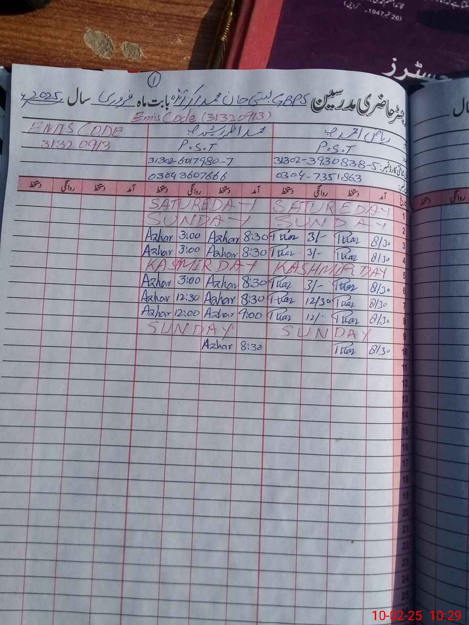 | EMIS Code: 31320913 | Name of School: GPS JAN MUHAMMAD | |||