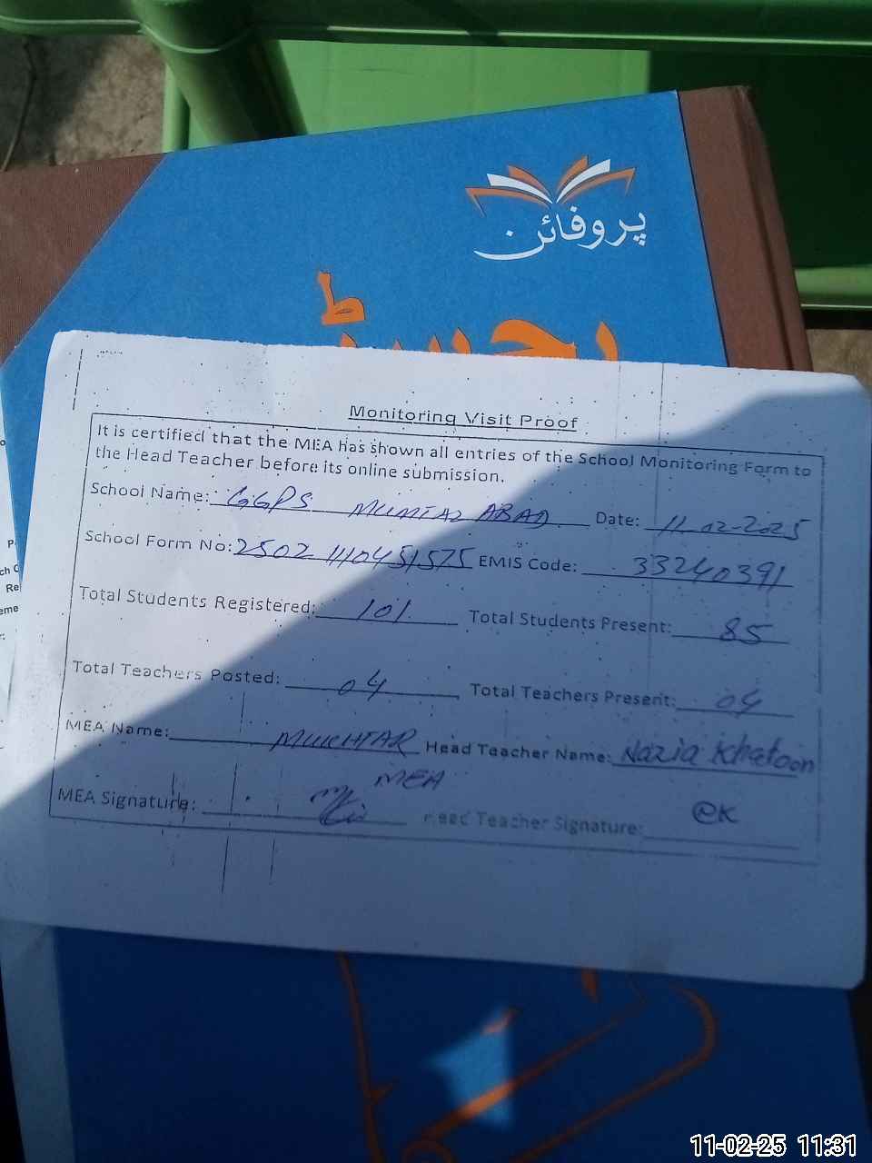 | EMIS Code: 33240391 | Name of School: GGPS MUMTAZ ABAD | |||