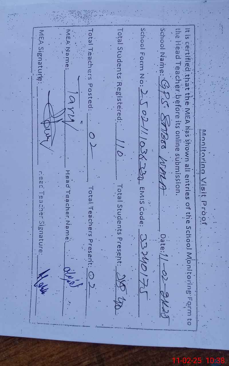 | EMIS Code: 33240175 | Name of School: GPS SABOO WALA | |||