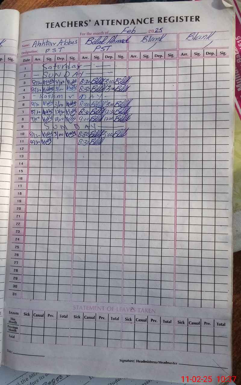 | Name: Ak**** Ab**** Designation: (School Headmaster's/Headmistress's) PST Phone/Cell Number: 03**** |