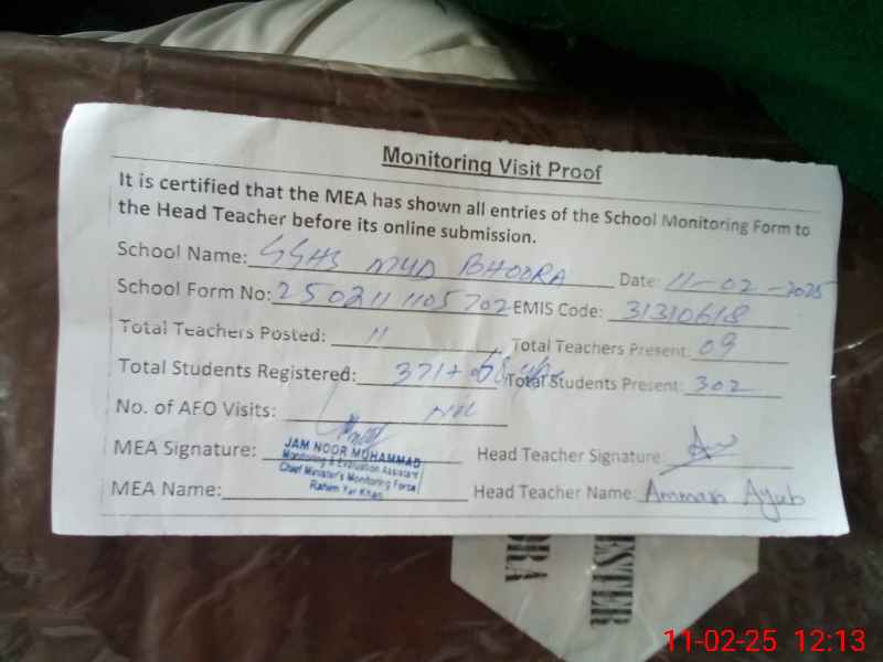 | EMIS Code: 31310618 | Name of School: GGHS MUD BHOORA | |||