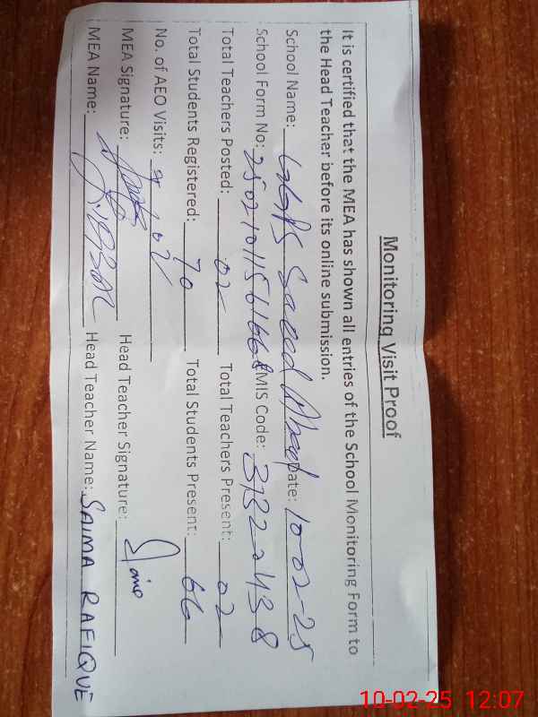 | EMIS Code: 31320438 | Name of School: GGPS SAEED ABAD | |||