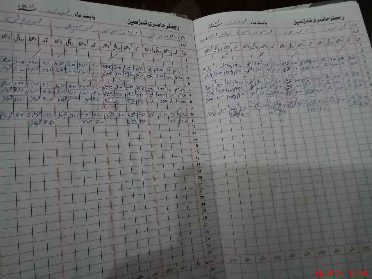 | CNIC | Full Name | Designation | R/C | Absence During Last Calender Month |