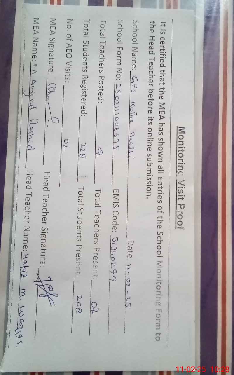 | EMIS Code: 31340299 | Name of School: GPS KOTHA THALI (PUNDAT DARI) | |||