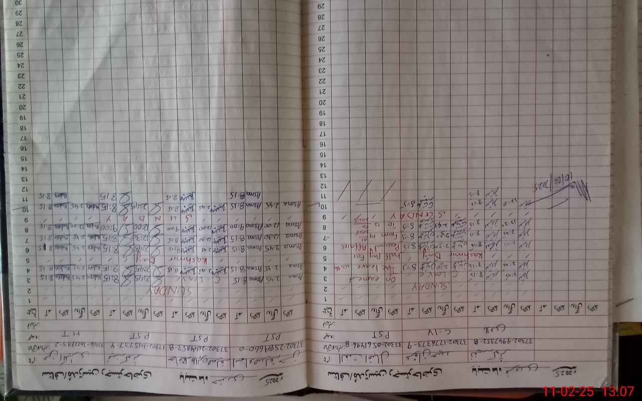 | CNIC | Full Name | Designation | R/C | Absence During Last Calender Month |