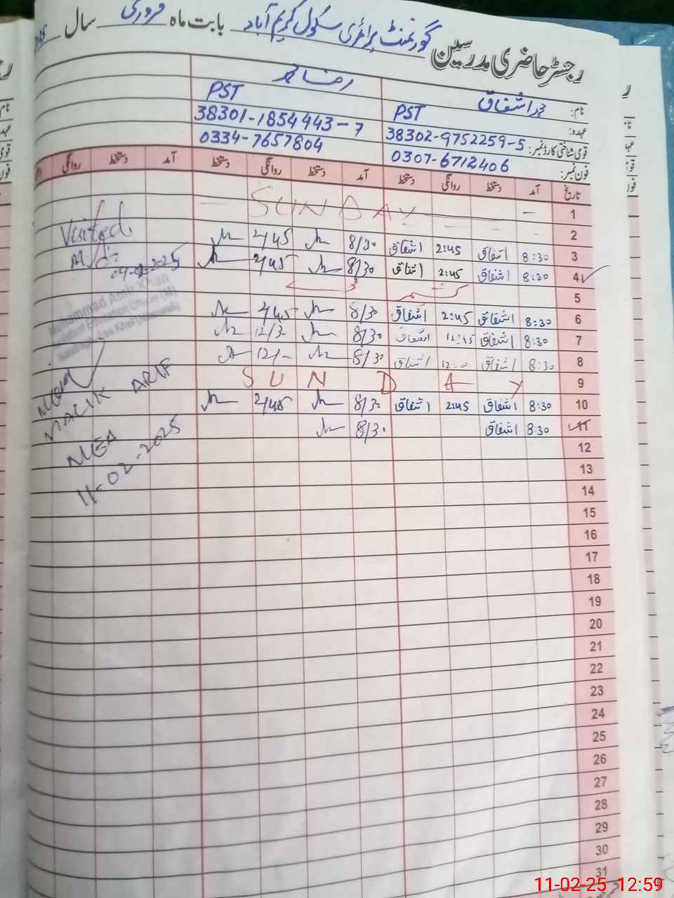 | Name: Za**** Iq**** Designation: (School Headmaster's/Headmistress's) PST/ Phone/Cell Number: 03**** |