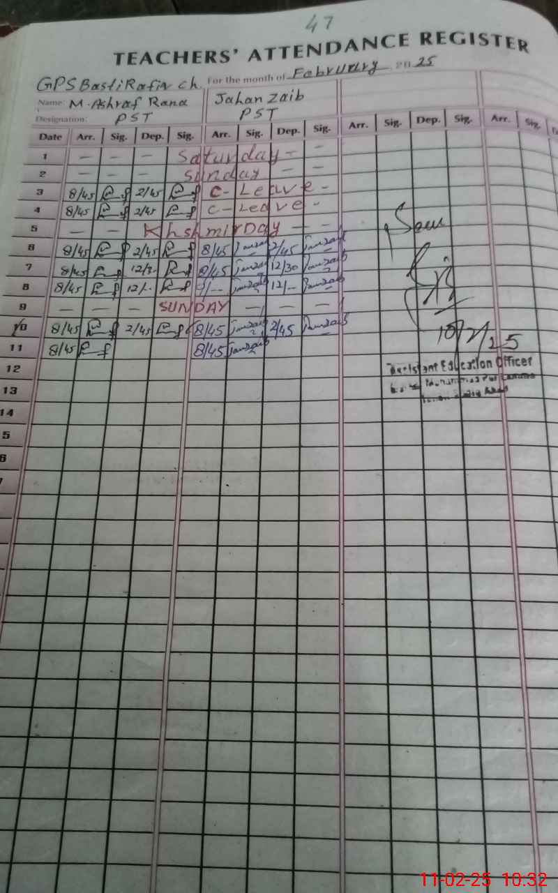 | Name: M.**** Designation: (School Headmaster's/Headmistress's) PST/PTC/JV Phone/Cell Number: 03**** |