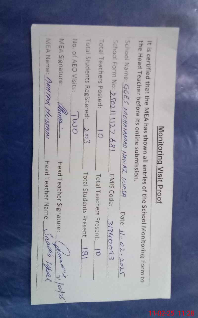 | EMIS Code: 31340093 | Name of School: GGES MUHAMMAD NAWAZ WASA | |||