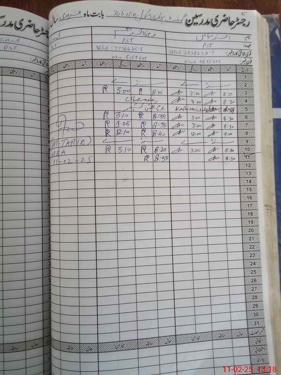 | CNIC | Full Name | Designation | R/C | Absence During Last Calender Month |