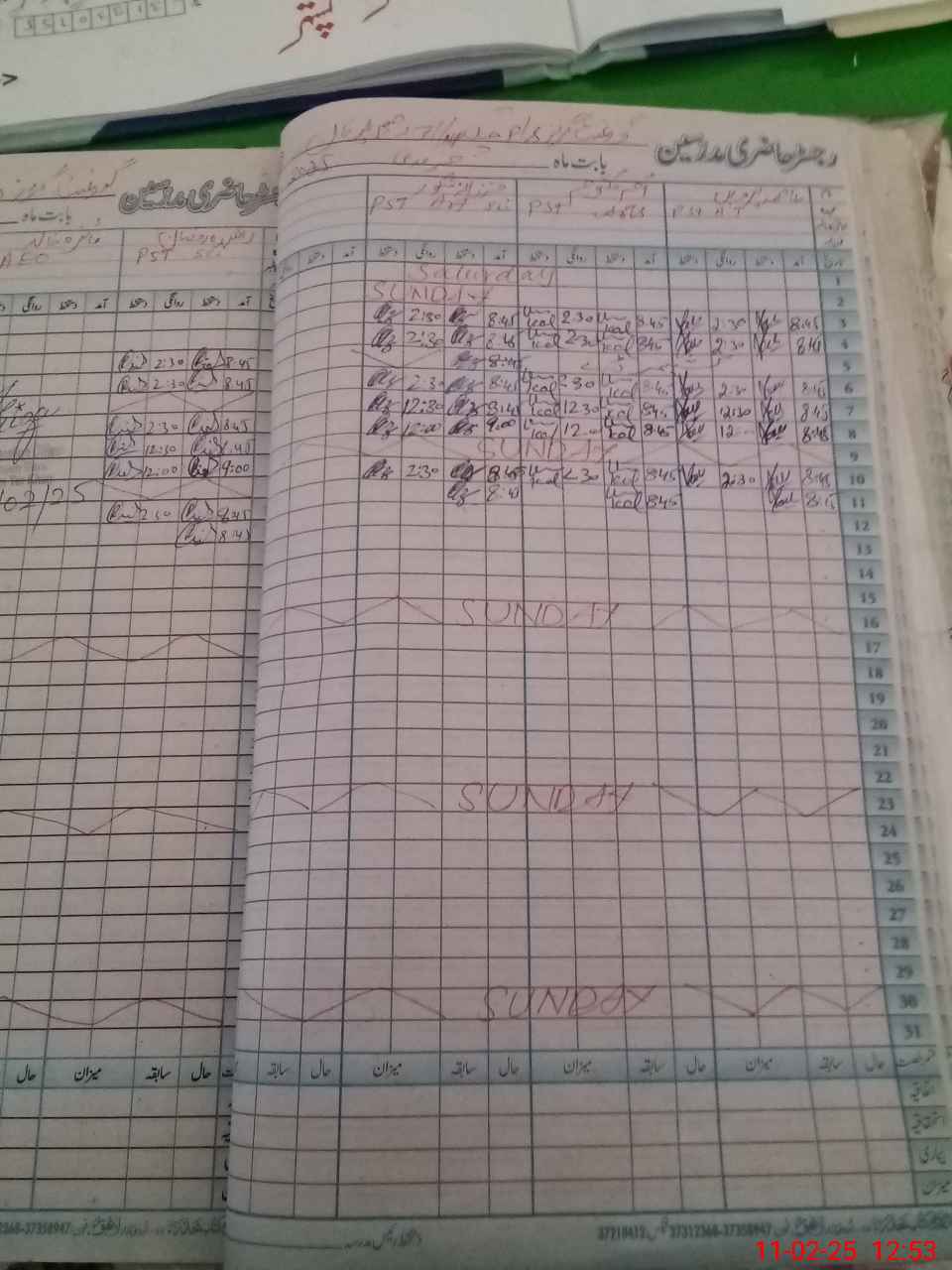 | CNIC | Full Name | Designation | R/C | Absence During Last Calender Month |