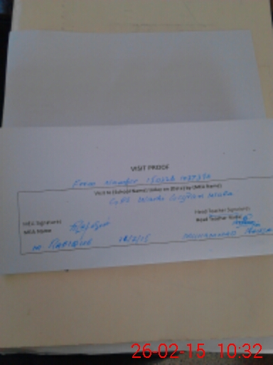 | Attendance Register | Head Teacher | MEA with School | Visit Proof |