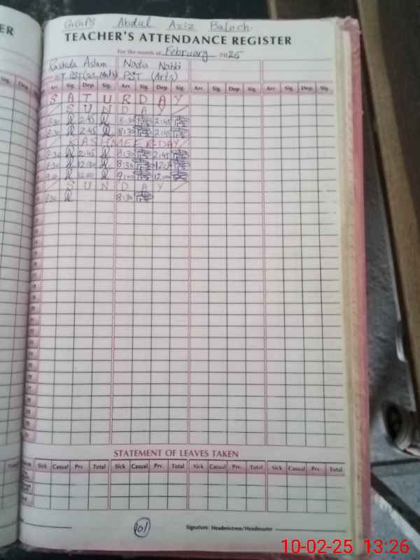 | EMIS Code: 31320625 | Name of School: GGPS ABDUL AZIZ BALOCH | |||