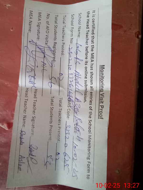 | Certified that this School was Inspected by the Undersigned MEA/DMO Today and the Information Stated Above is as Per Record. | |||||
