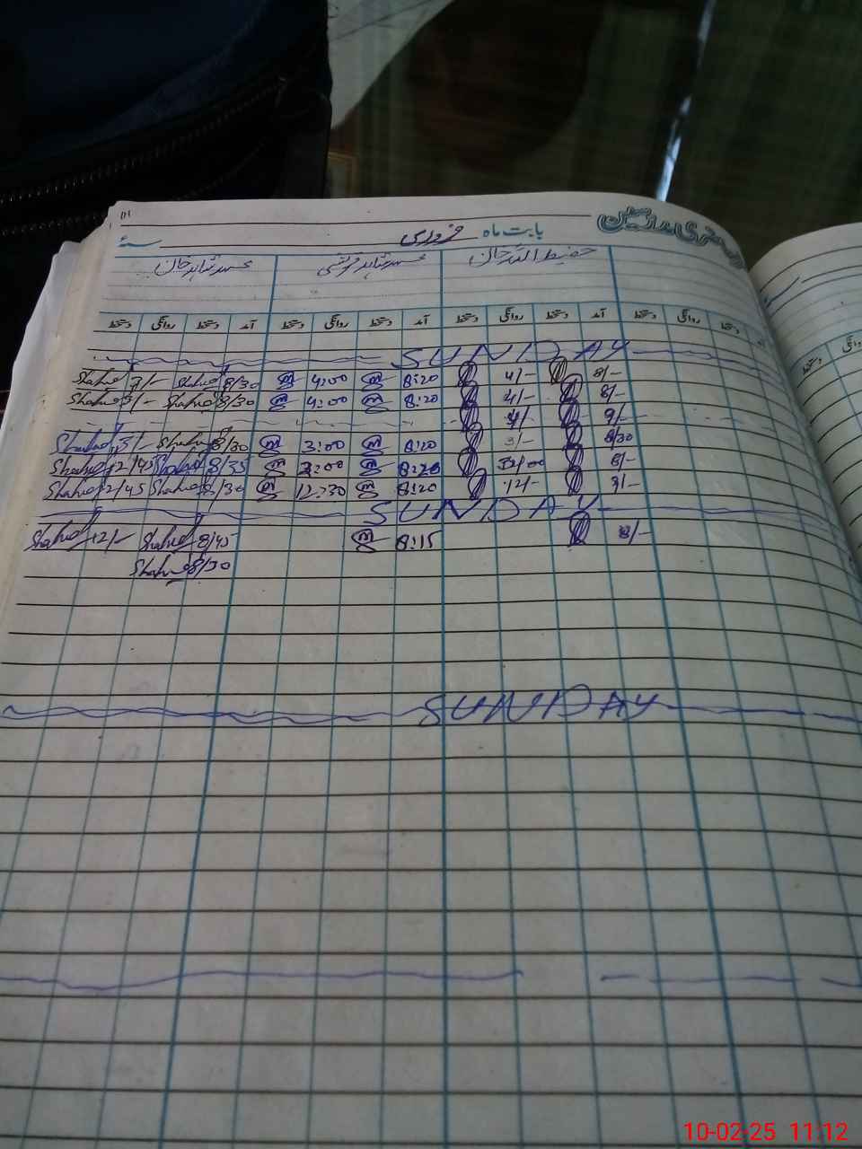 | CNIC | Full Name | Designation | R/C | Absence during last cal. month |
