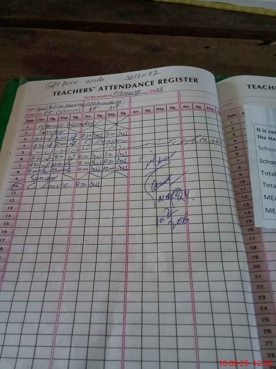 | Name: Sy**** Ir**** Hu**** Designation: (School Headmaster's/Headmistress's) Pst Phone/Cell Number: 03**** |