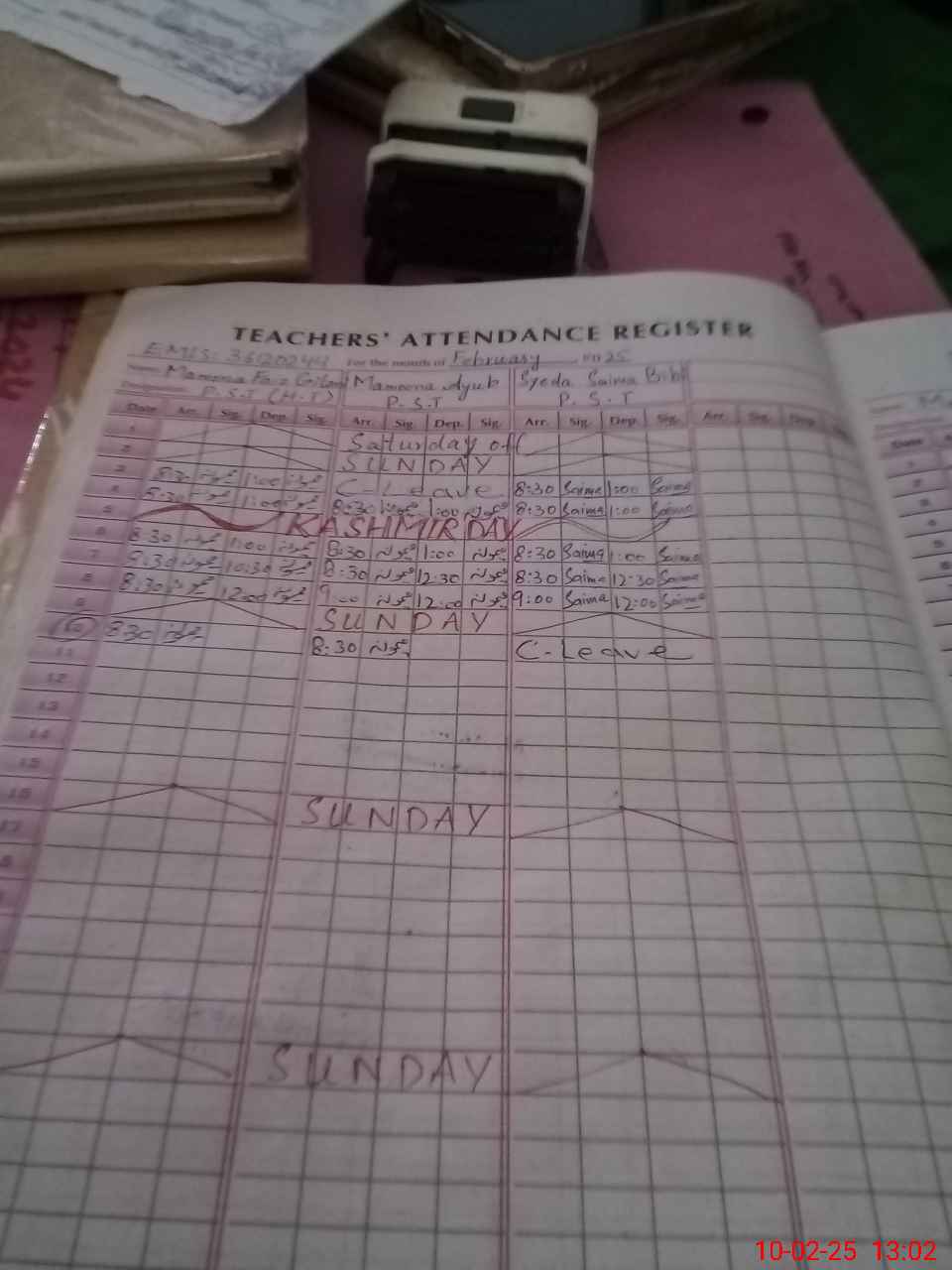 | CNIC | Full Name | Designation | R/C | Absence During Last Calender Month |