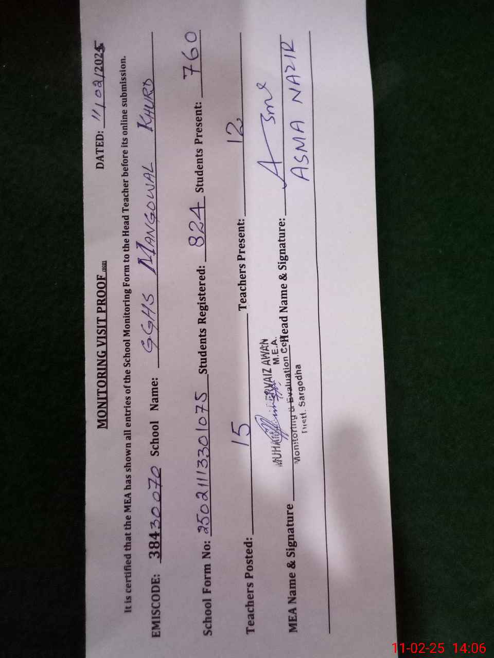 | EMIS Code: 38430070 | Name of School: GGHS MANGOWAL KHURD | |||