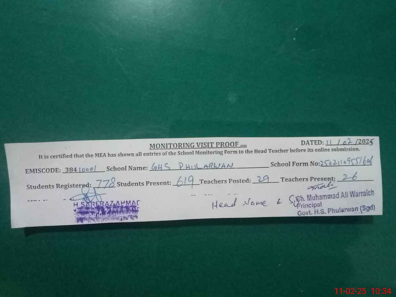 | EMIS Code: 38410001 | Name of School: GHS PHULARWAN | |||