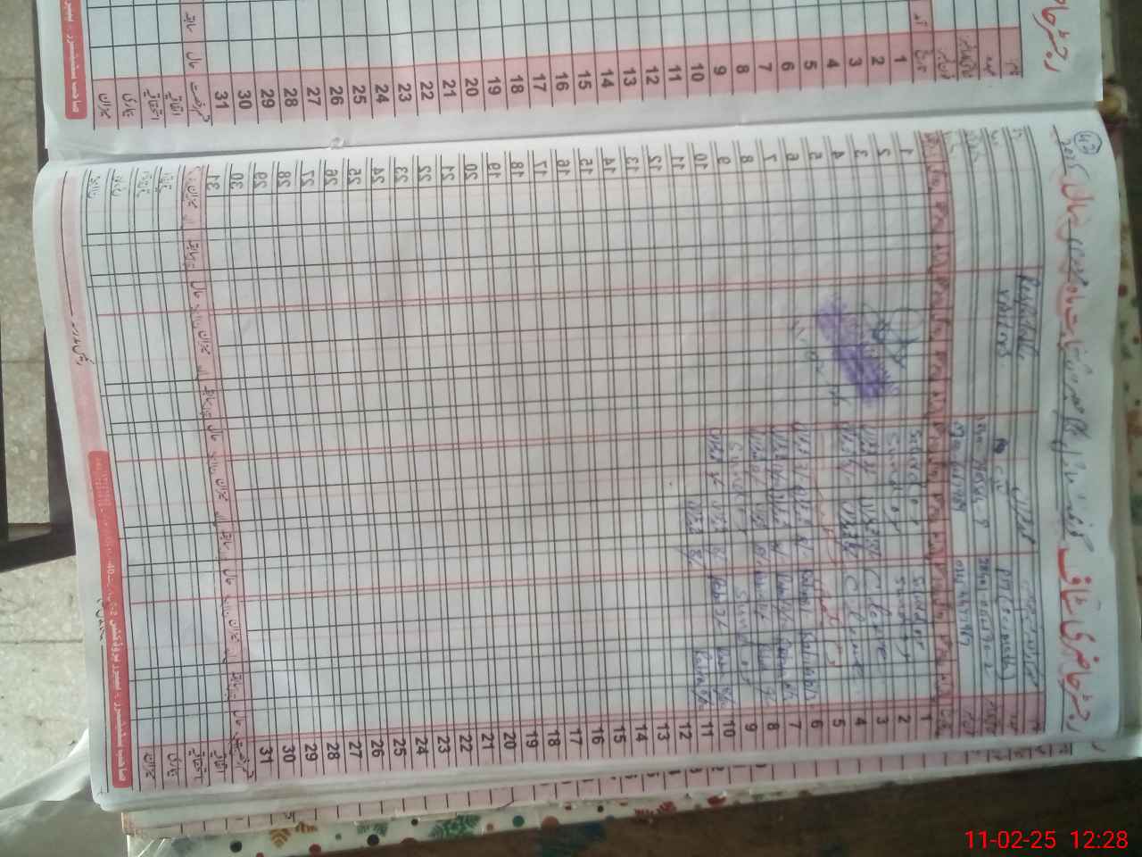 | CNIC | Full Name | Designation | R/C | Absence During Last Calender Month |