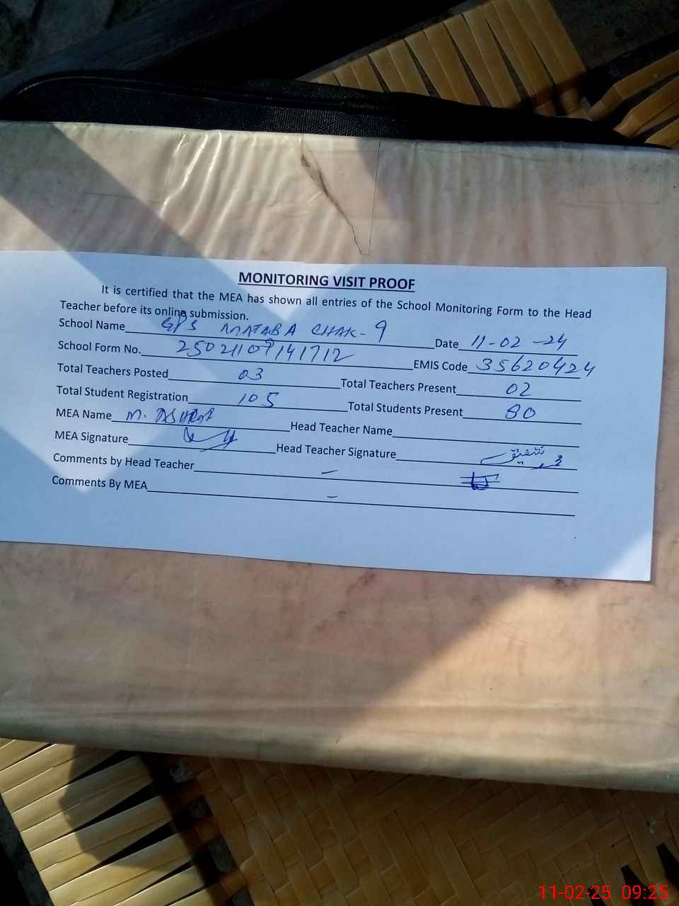 | EMIS Code: 35620424 | Name of School: GPS MATABA CHAK 9 | |||
