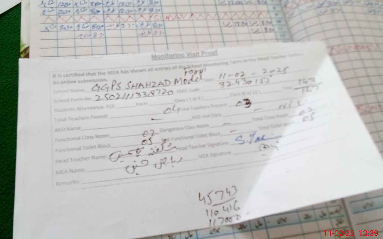 | EMIS Code: 32430155 | Name of School: GGPS SHAHZAD MODEL FARM | |||