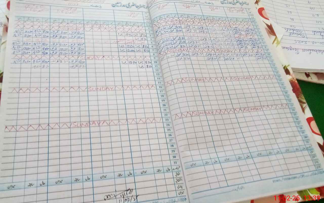 | CNIC | Full Name | Designation | R/C | Absence During Last Calender Month |