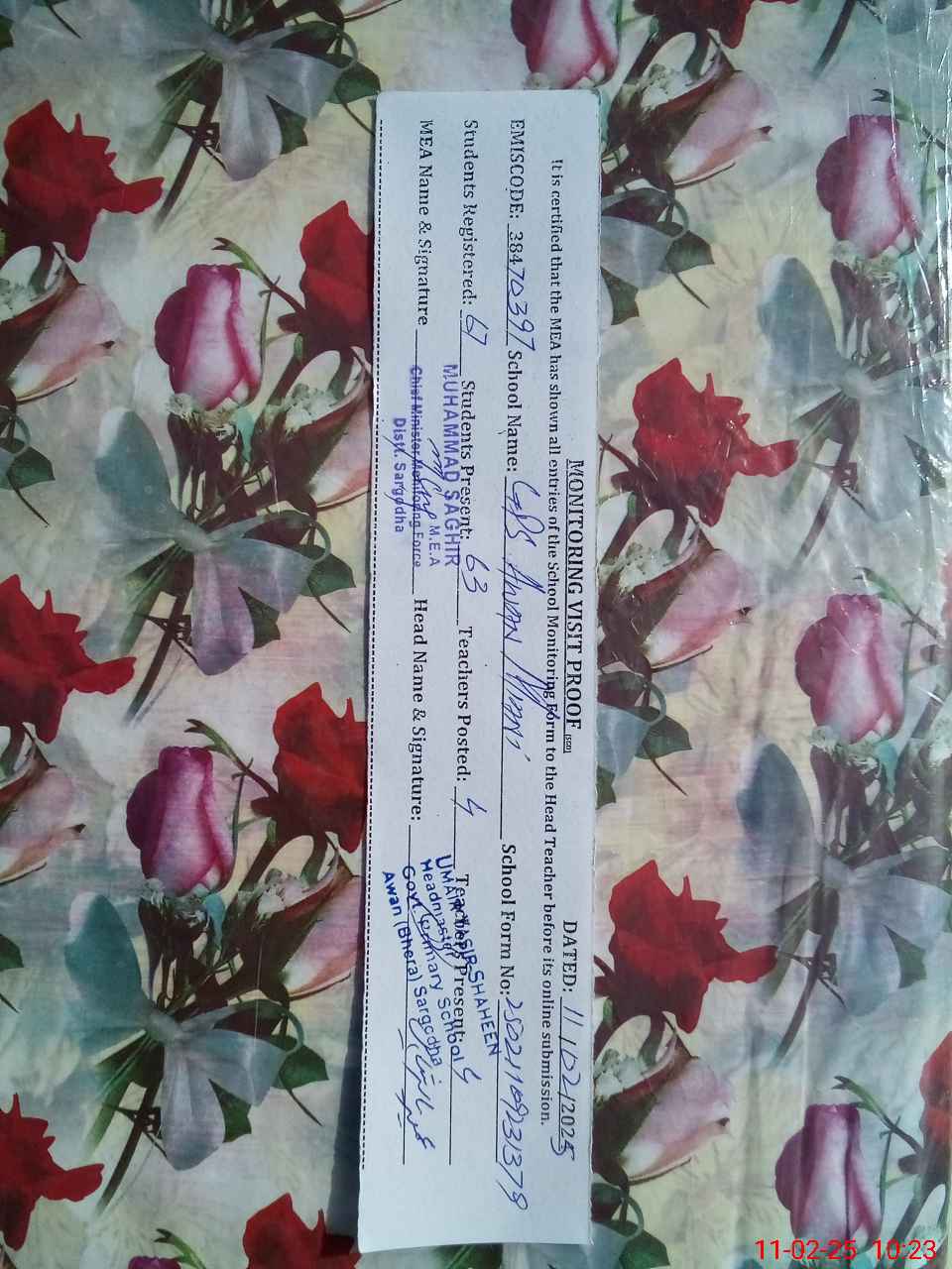 | Attendance Register | Head Teacher | MEA with School | Visit Proof |