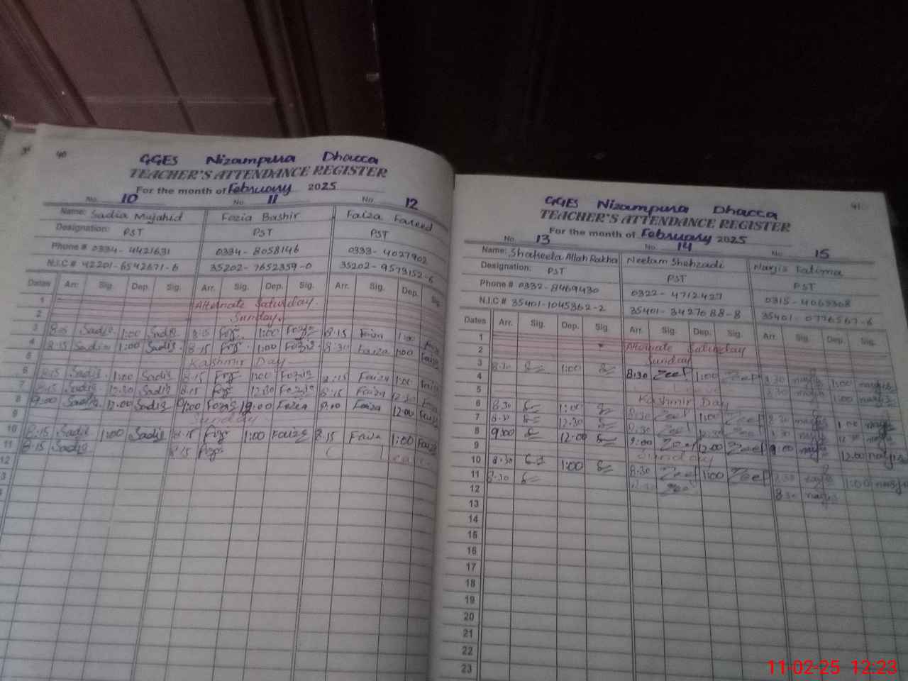 | CNIC | Full Name | Designation | R/C | Absence During Last Calender Month |