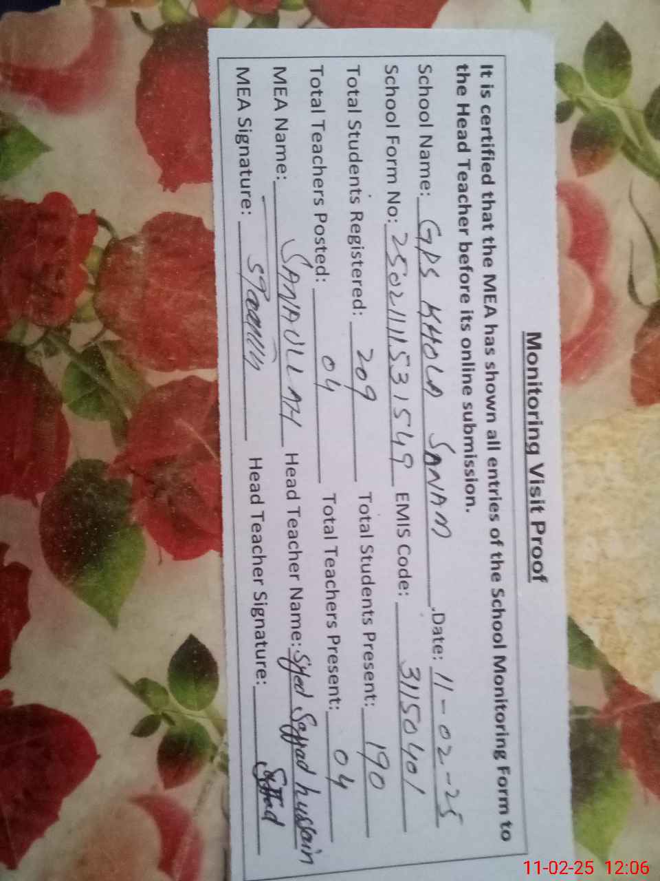 | EMIS Code: 31150401 | Name of School: GPS KHOLA SANAM | |||