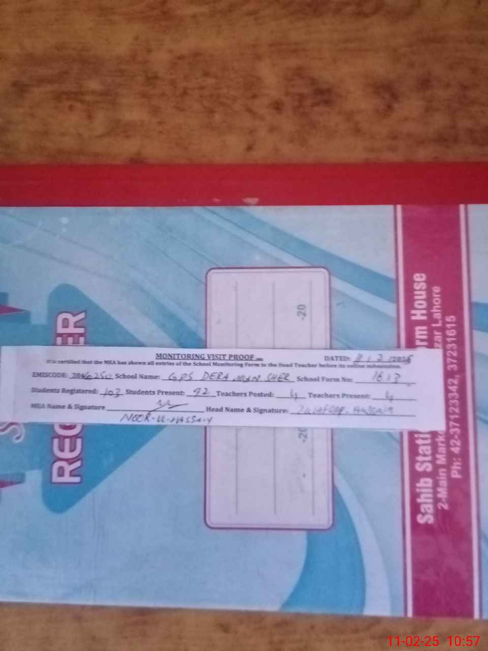 | EMIS Code: 38460250 | Name of School: GPS DERA MIAN SHER | |||