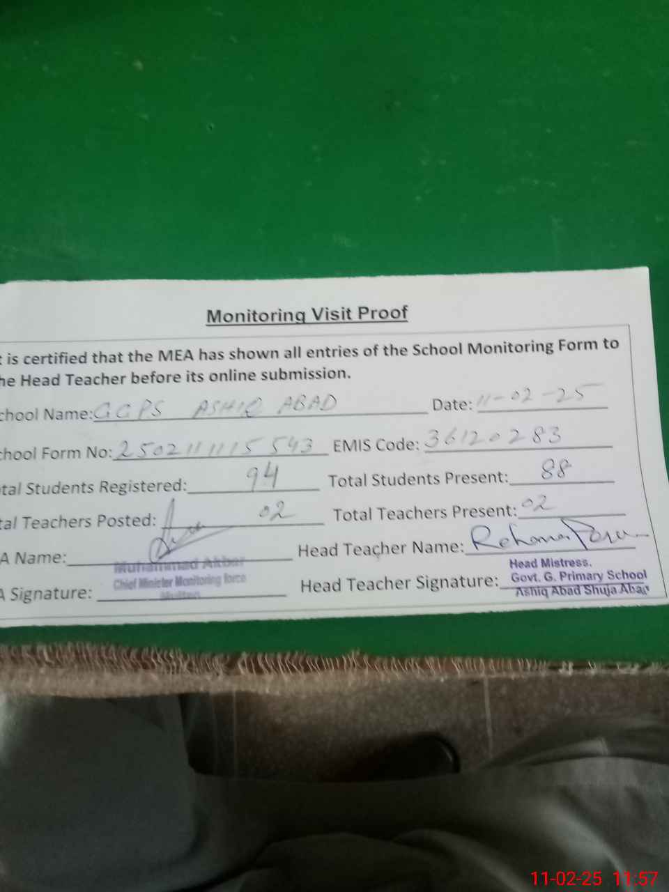 | EMIS Code: 36120283 | Name of School: GGPS ASHIQ ABAD SHUJABAD | |||