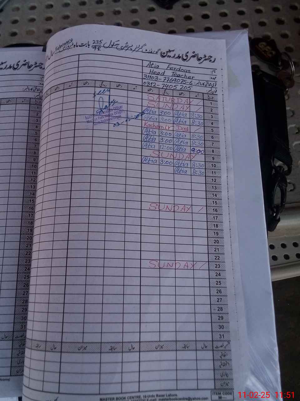 | Name: At**** Fa**** Designation: (School Headmaster's/Headmistress's) Pst Phone/Cell Number: 03**** |