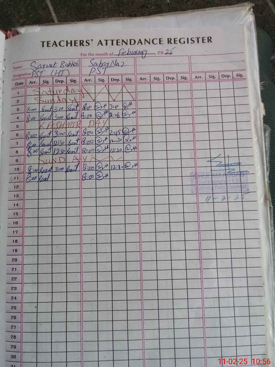 | Name: SA**** BU**** Designation: (School Headmaster's/Headmistress's) PST Phone/Cell Number: 03**** |