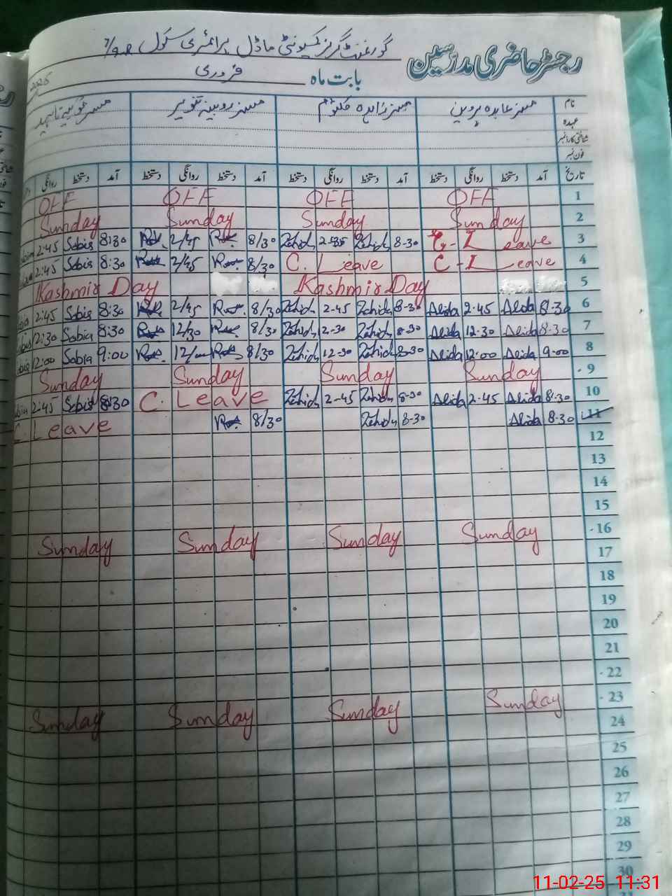 | CNIC | Full Name | Designation | R/C | Absence During Last Calender Month |