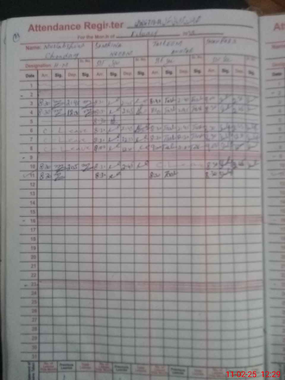 | CNIC | Full Name | Designation | R/C | Absence During Last Calender Month |